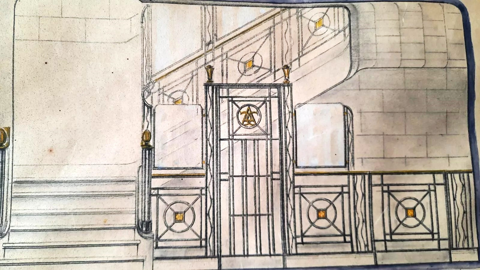 Études de grilles en fer forgé : porte, fenêtres, garde-corps, début 1900.