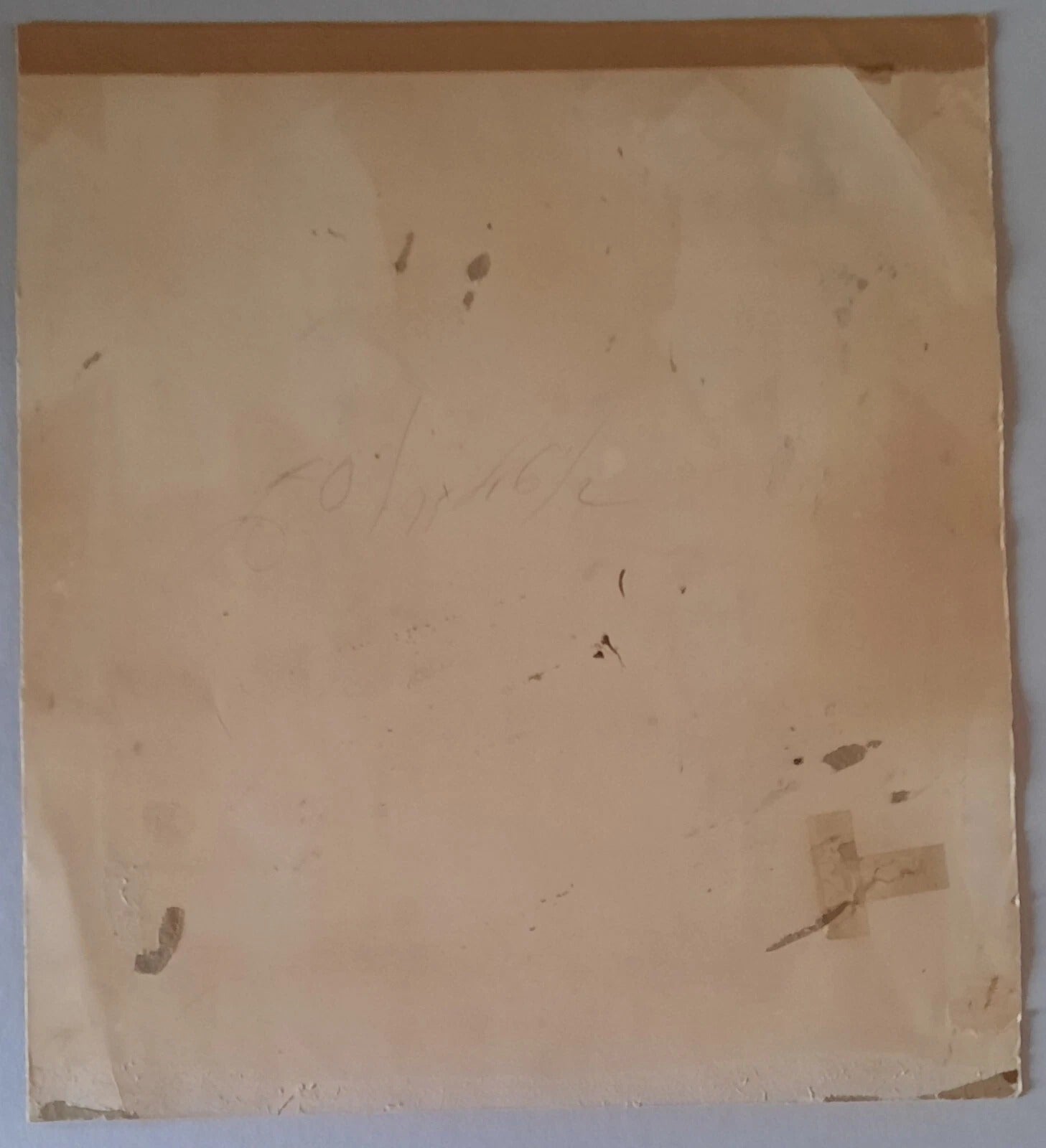 Le carton a été coupé à droite coupant la première signature gouachée ; une seconde signature a été exécutée à la mine de crayon.