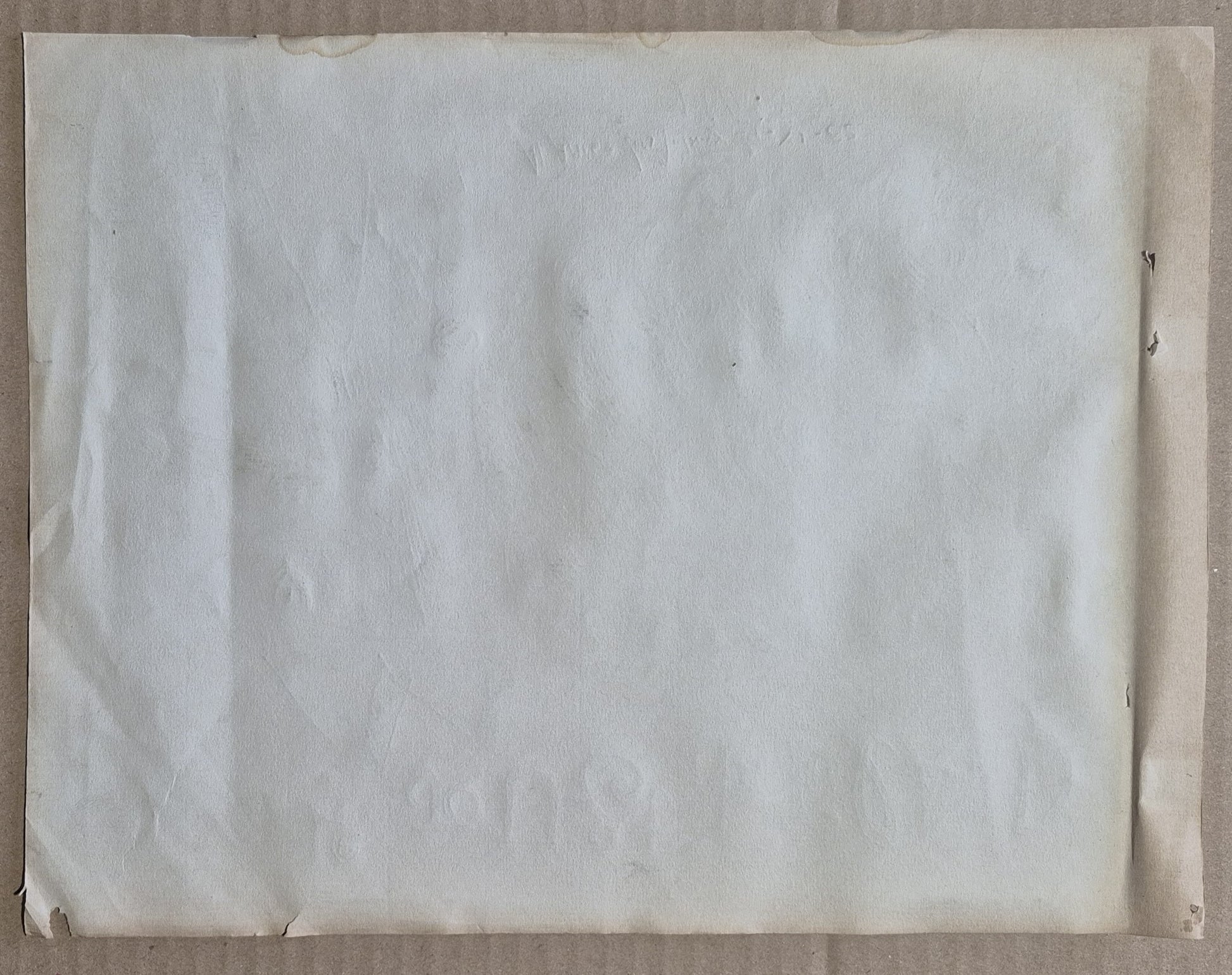 24,5 x 32 cm. Traces d’oxydation du papier, bords froissés, le bord droit témoignant d’un ancien encadrement qui a plié la bordure du papier.