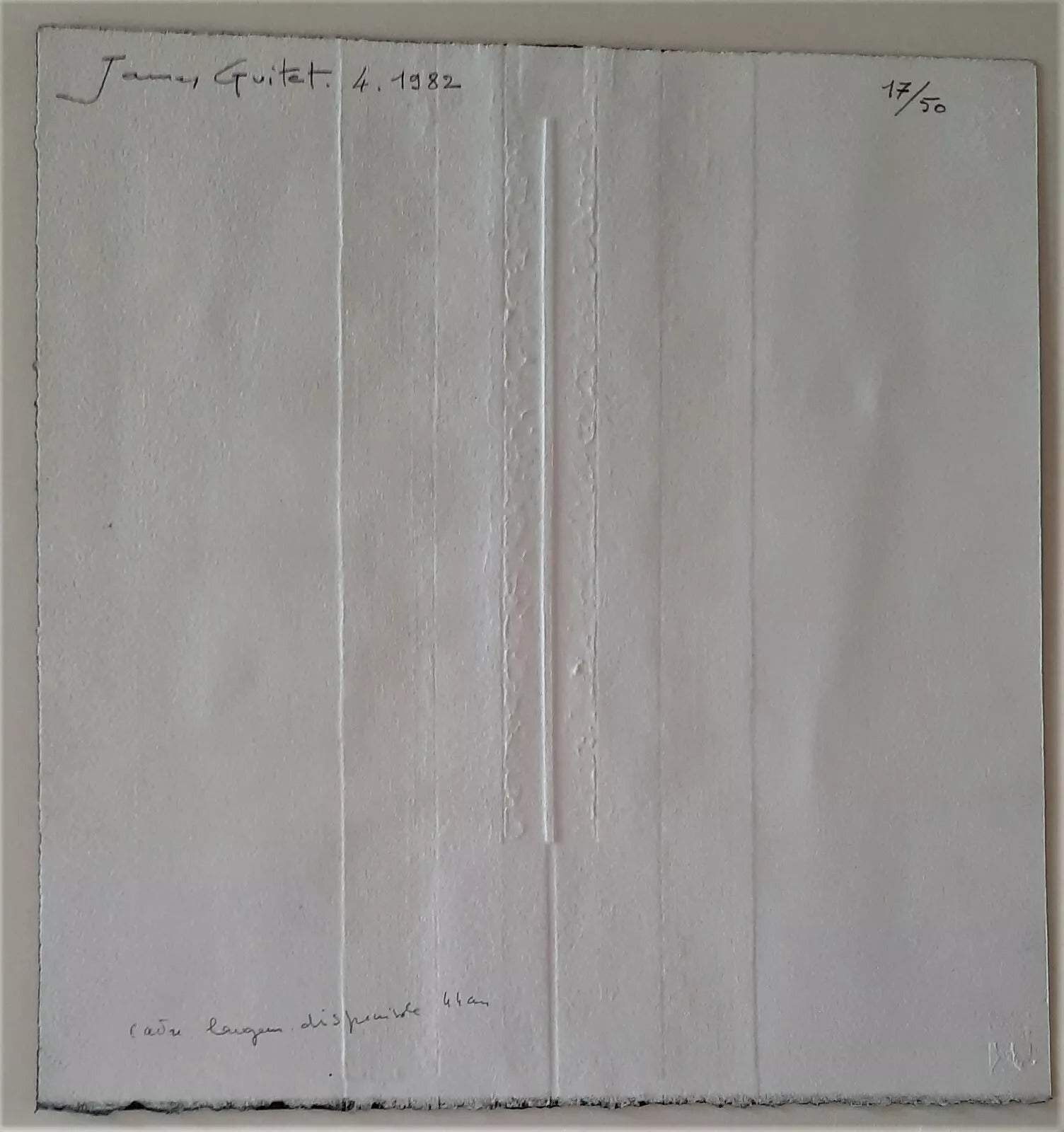 Gravure originale, eau-forte et aquatinte, signée, numérotée (17/50) et datée (4. 1982) au dos par l’artiste. Sur papier chiffon épais. 33 x 31,5 cm.