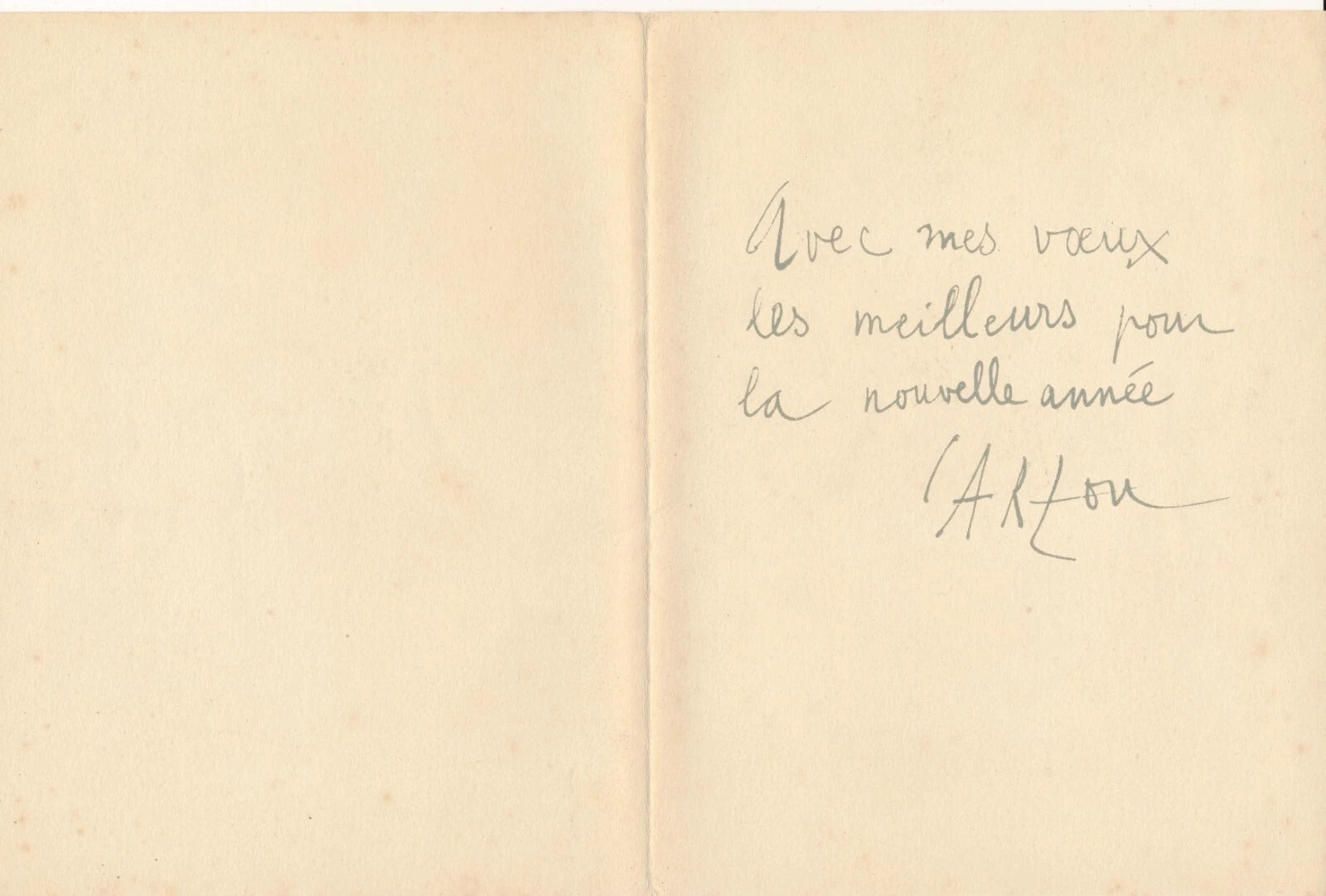 Carte de vœux pour l’année 1963. Lithographie datée « 63 », signée et numérotée 185/400. Avec envoi autographe signée au 2e volet. 15 x 19,8 cm (déplié : 30 x 19,8).