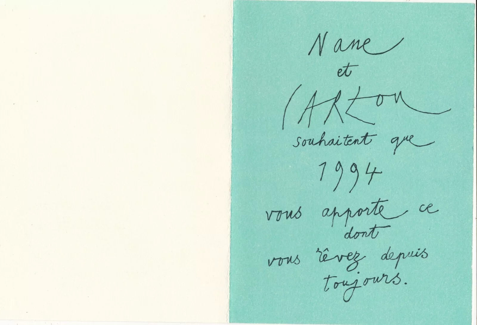 Carte de vœux pour l’année 1994. Lithographie numérotée 482/500 et signée. 20 x 30 cm dépliée.