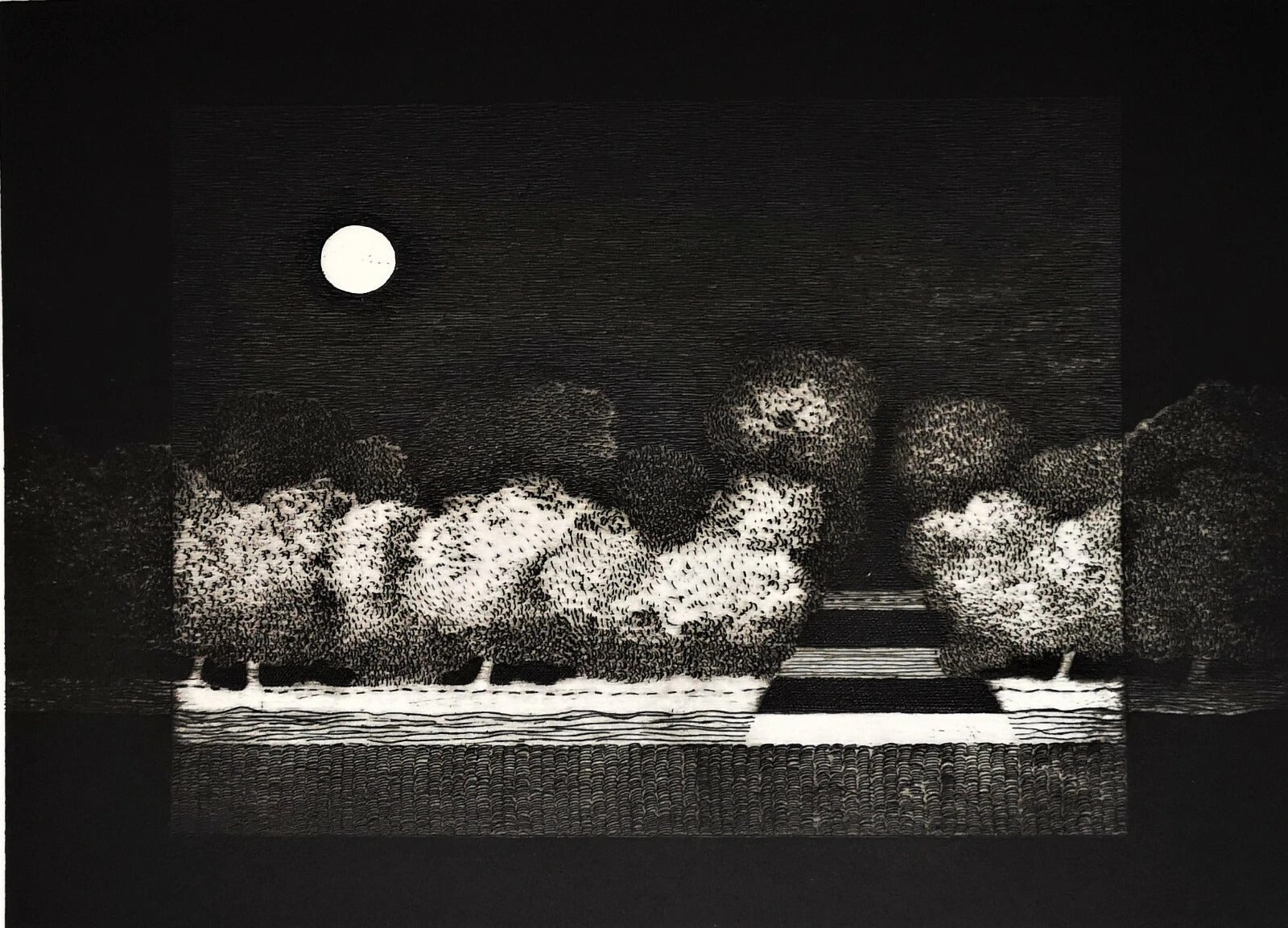 Gravure, eau-forte et aquatinte, titrée, numérotée 14/75, signée. Dimensions de la