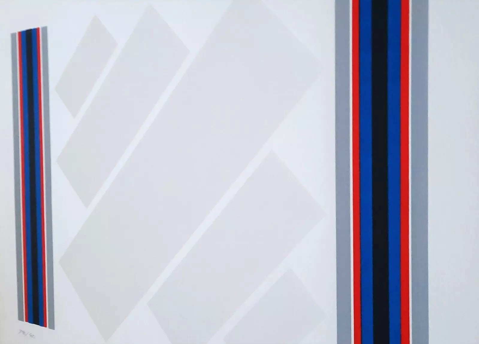 Sans titre. Sérigraphie numérotée (78/80) et signée. 38 x 48 cm. Œuvre extraite du portfolio Cercle, Carré et Ligne, 1983, édition à 80 exemplaires.